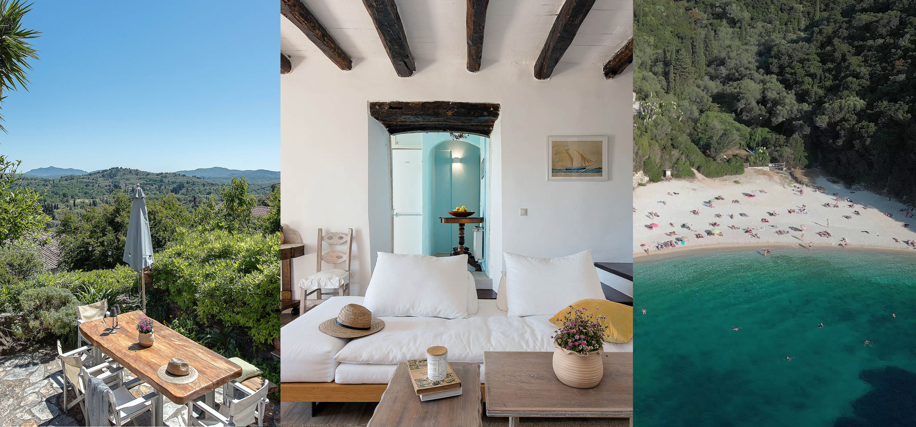 Holiday homes in and around the village of Ano Korakiana and the bay of Agni.